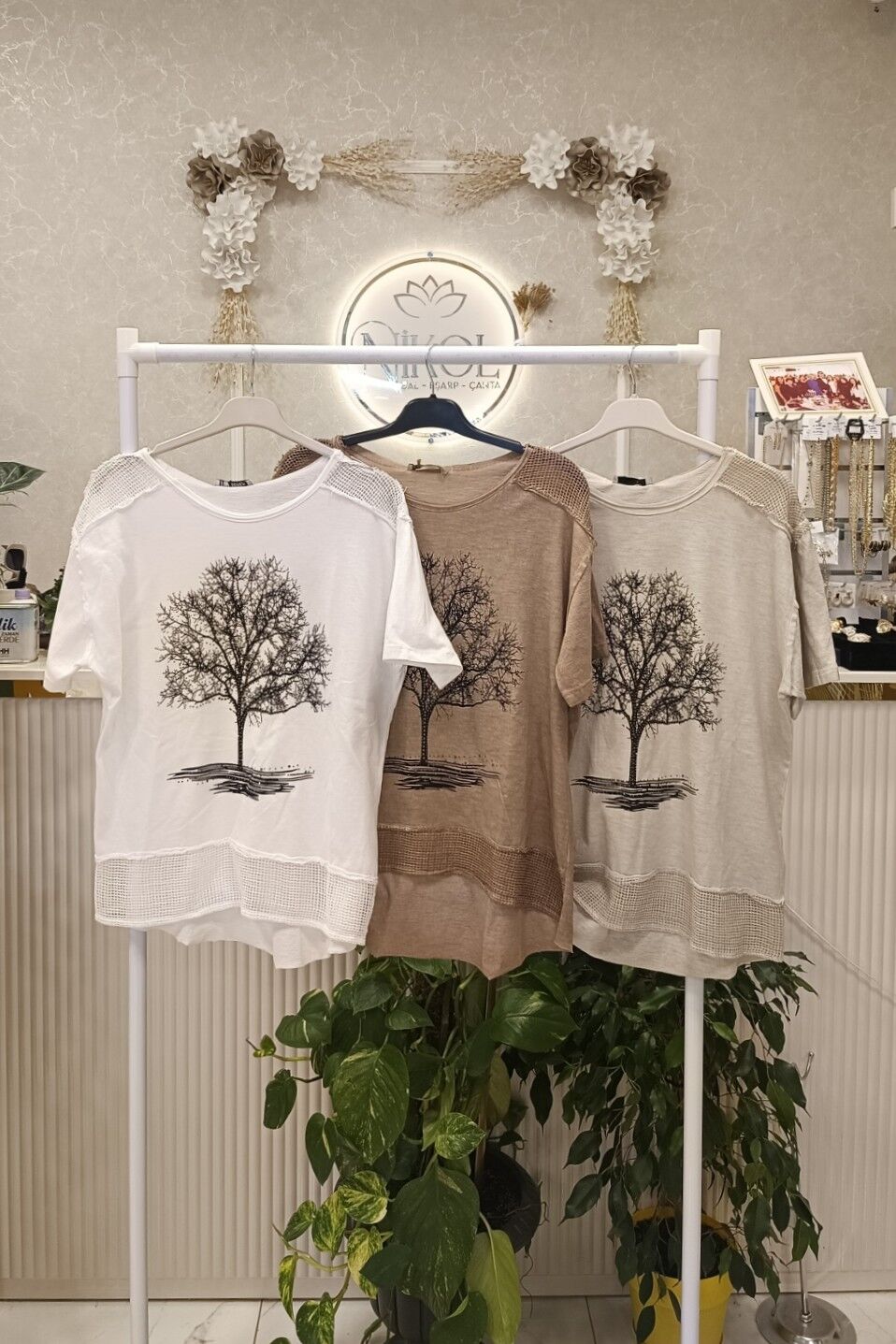 Pamuk (cotton) Kumaş Ağaç Desenli Tişört