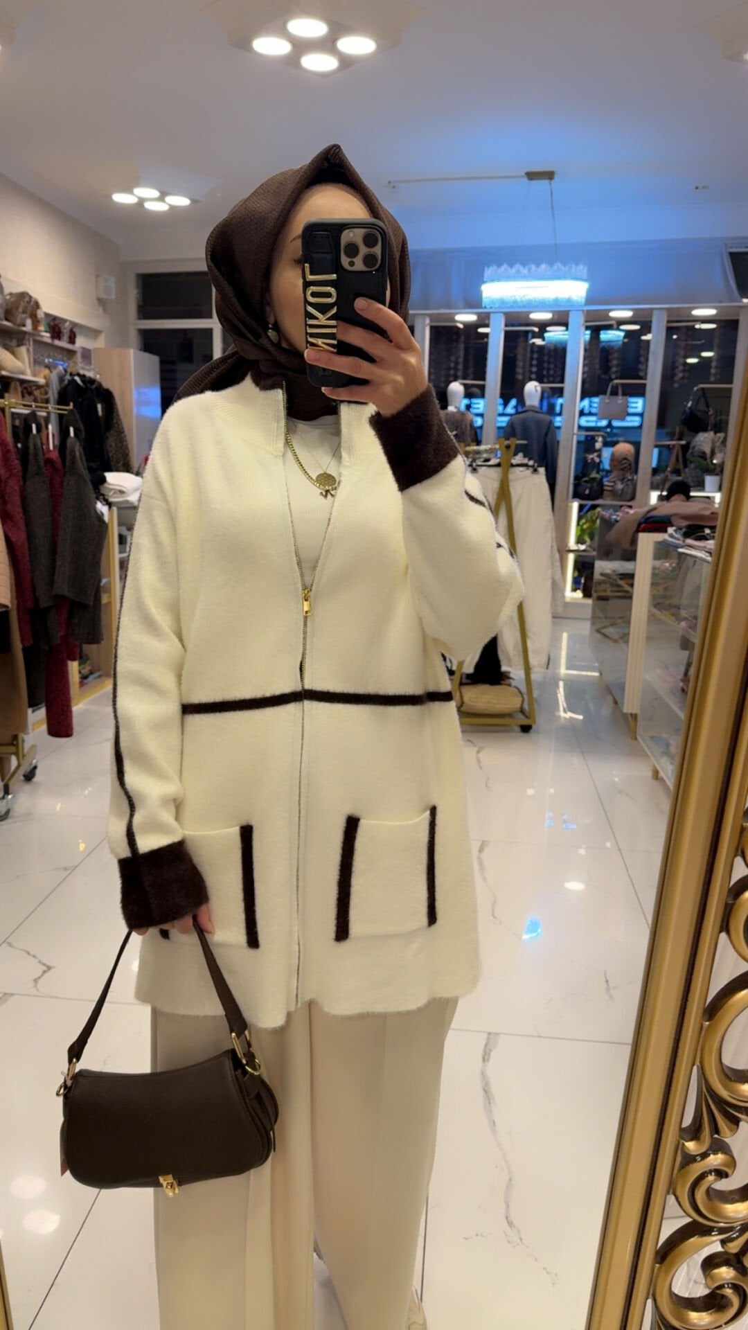 Renk: Kırık beyaz – Kahve detaylı