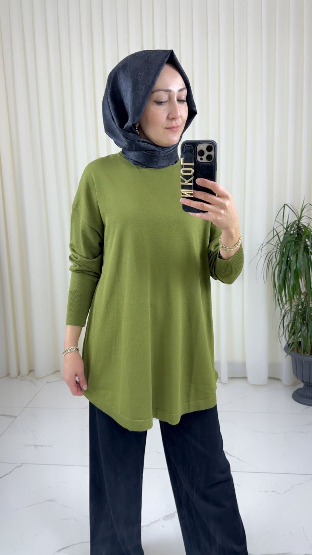 Rahat ve şık tasarımıyla günlük kombinlerin vazgeçilmezi olacak basic triko tunik, yumuşak dokusu ve dökümlü kalıbıyla konforlu bir kullanım sunar. Standart bedeni sayesinde her vücut tipine uyum sağlar. Hem spor hem de klasik kombinlerde tercih edebileceğiniz bu tunik, zarif görünümüyle gardırobunuzun kurtarıcı parçalarından olacak.