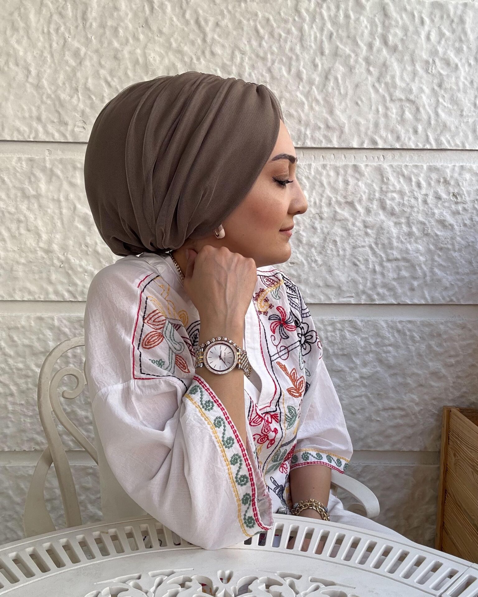 Şıklık ve pratikliği bir arada sunan burgu detaylı hazır bone, günlük kombinlerinize zarif bir dokunuş katıyor. Bağlama gerektirmeyen yapısı sayesinde kolay kullanım sağlar, yoğun tempoda bile stilinizden ödün vermezsiniz.