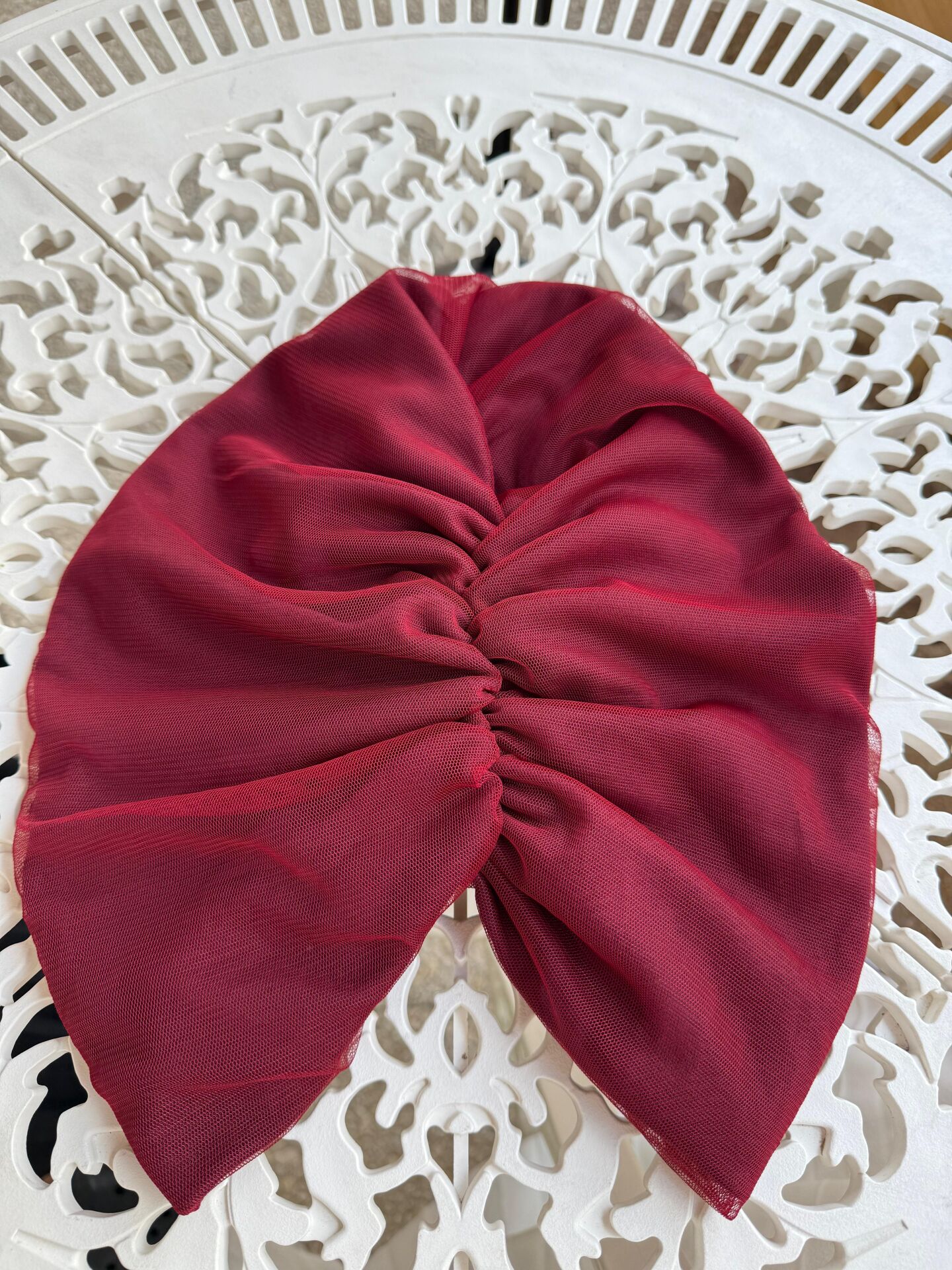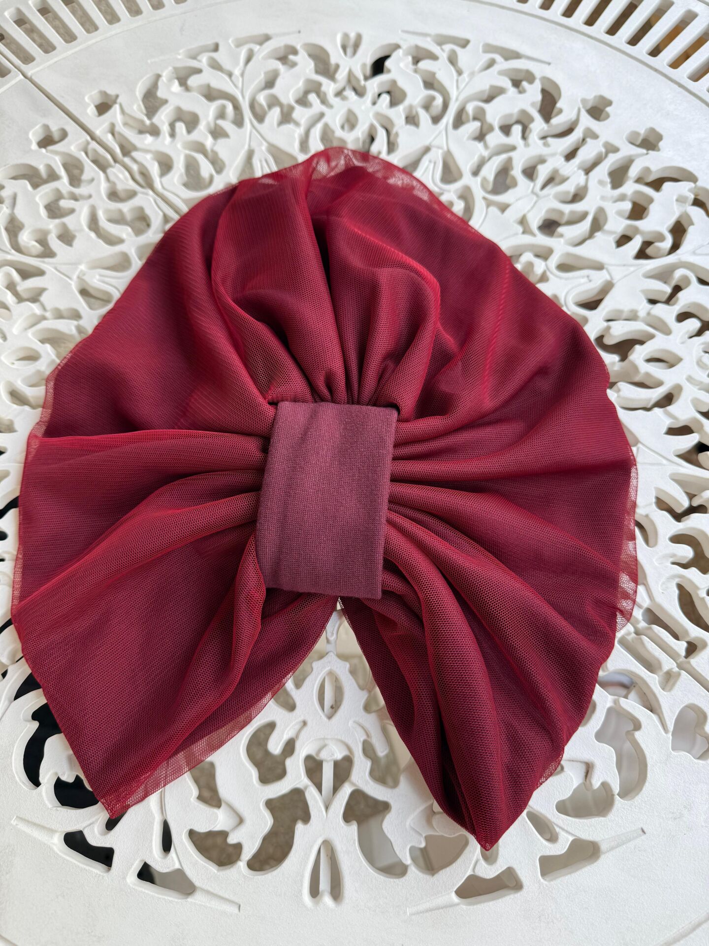 Burgu Detaylı Hazır Tül Bone - Kırmızı