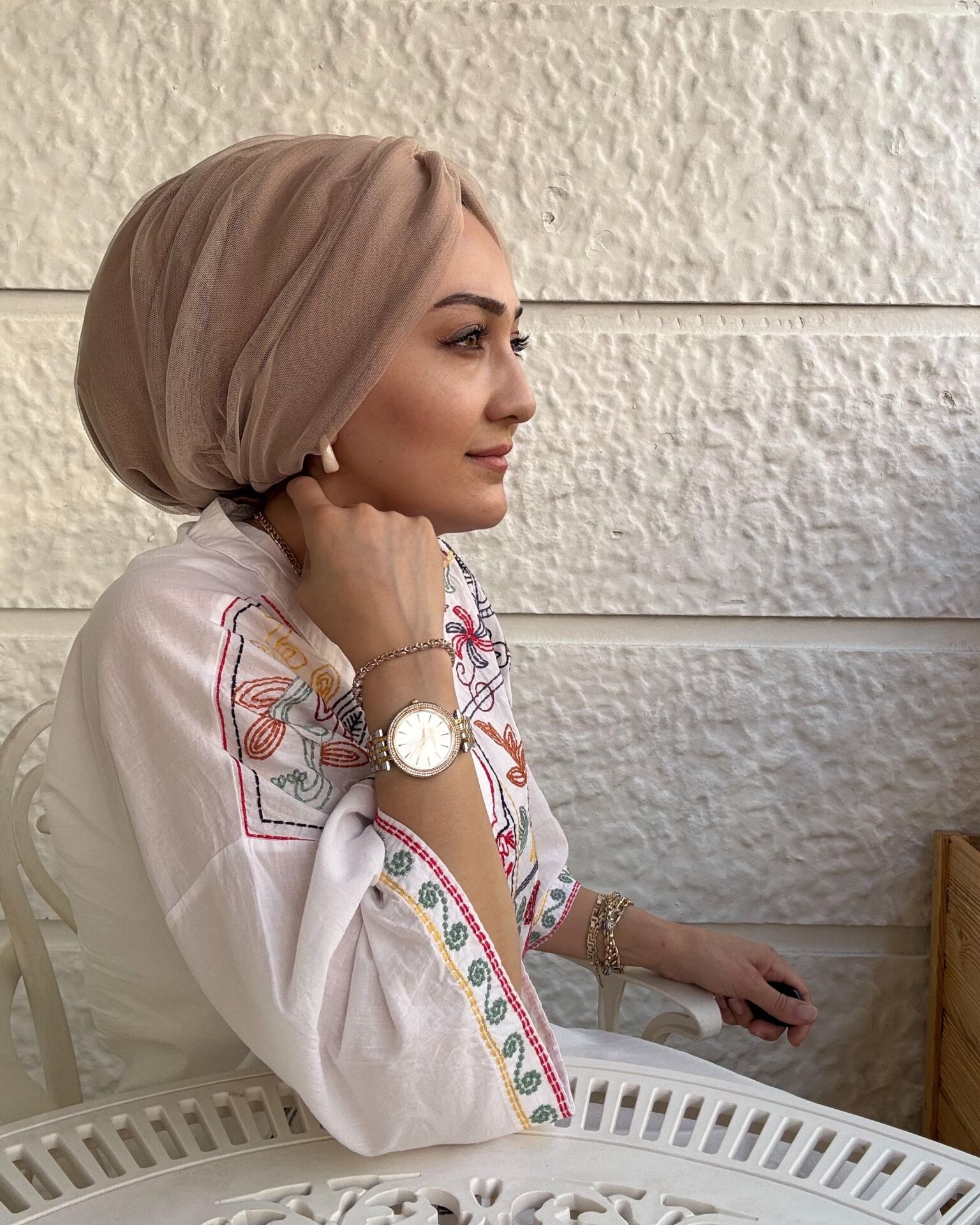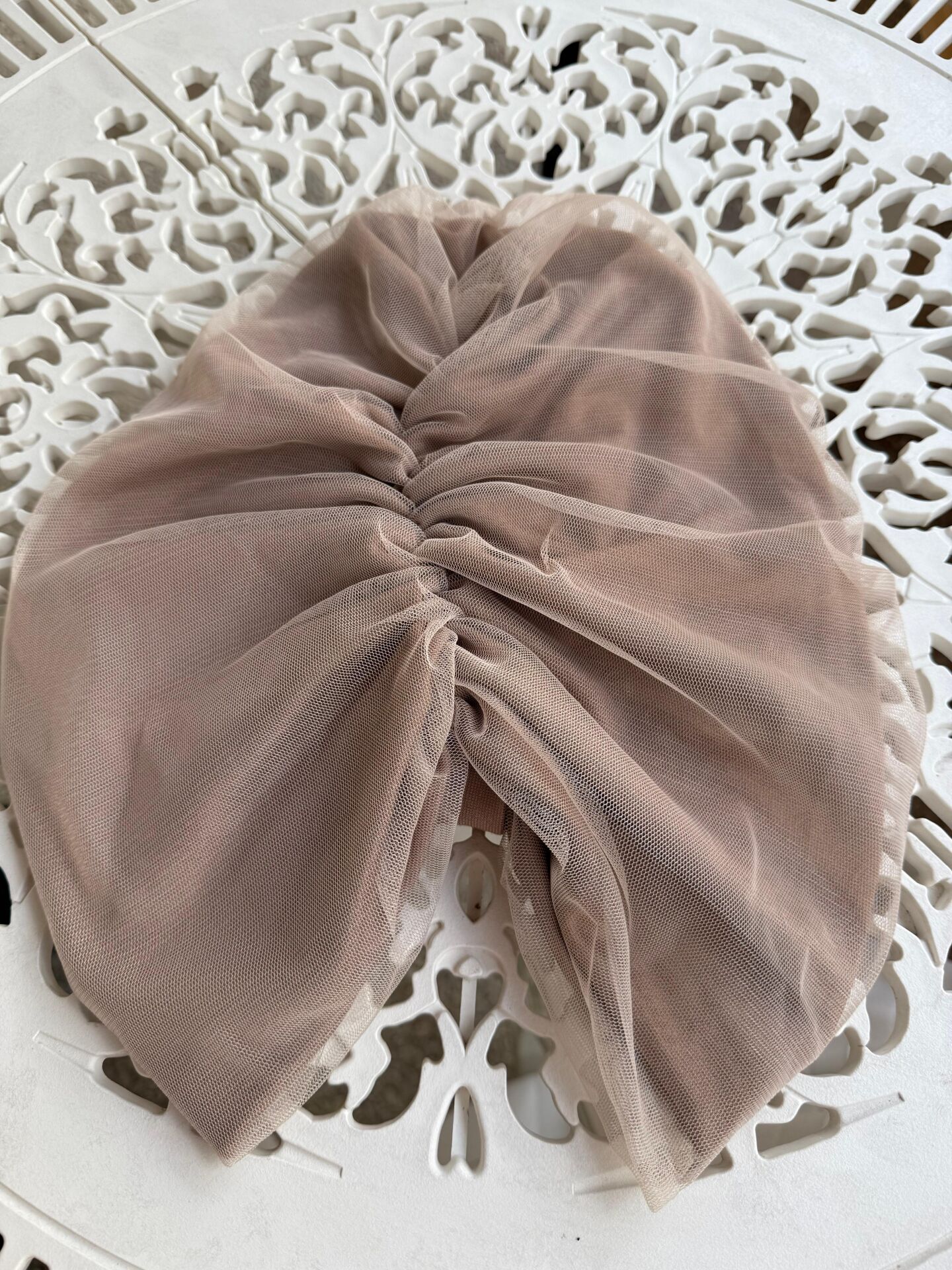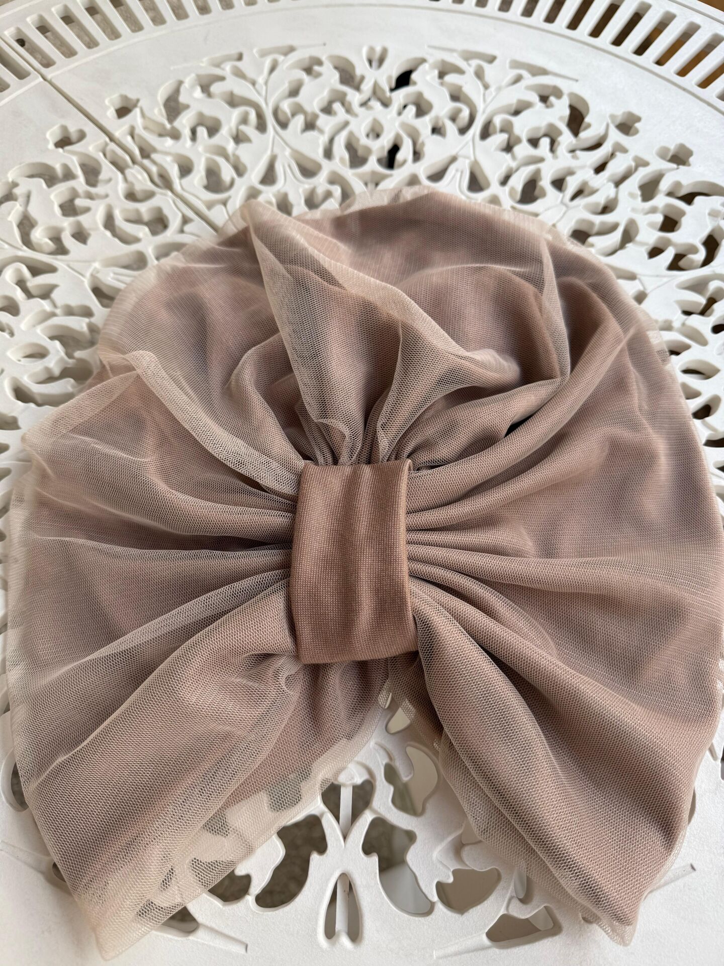 Burgu Detaylı Hazır Tül Bone - Vizon