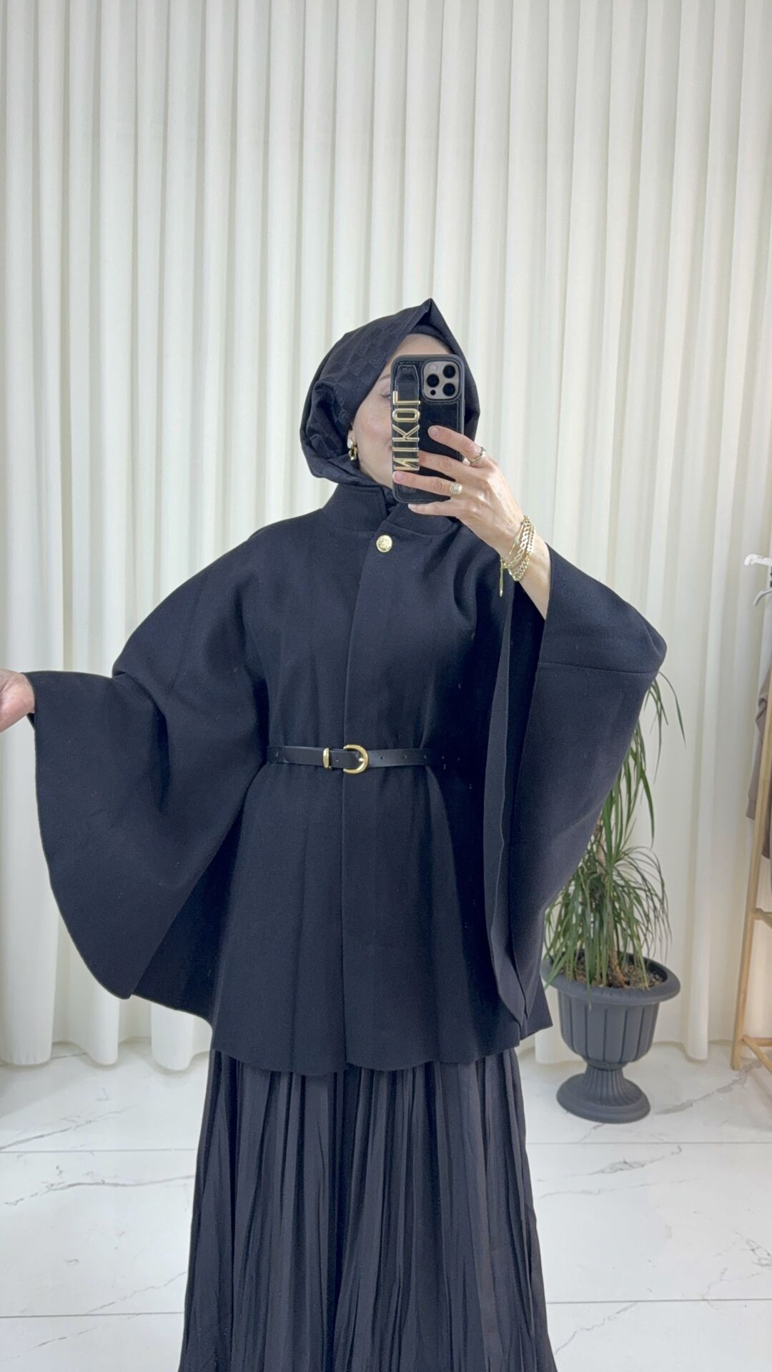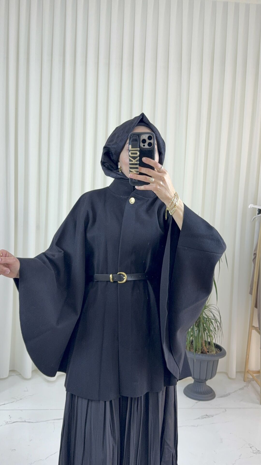 Zarif duruşu ve modern kesimiyle dikkat çeken dökümlü kol detaylı kap, minimal tarzı seven kadınların favorisi olmaya aday. Yumuşak dokulu kumaşıyla konforu ön planda tutarken, bel kısmındaki ince kemer detayı feminen bir siluet oluşturur. Düğmeli yakası ve geniş kollarıyla klasik şıklığı modern bir yorumla buluşturur. Günlük kombinlerden özel davetlere kadar her ortamda rahatlıkla kullanabileceğiniz bu tasarım, sade ama etkileyici görünüm sunar.