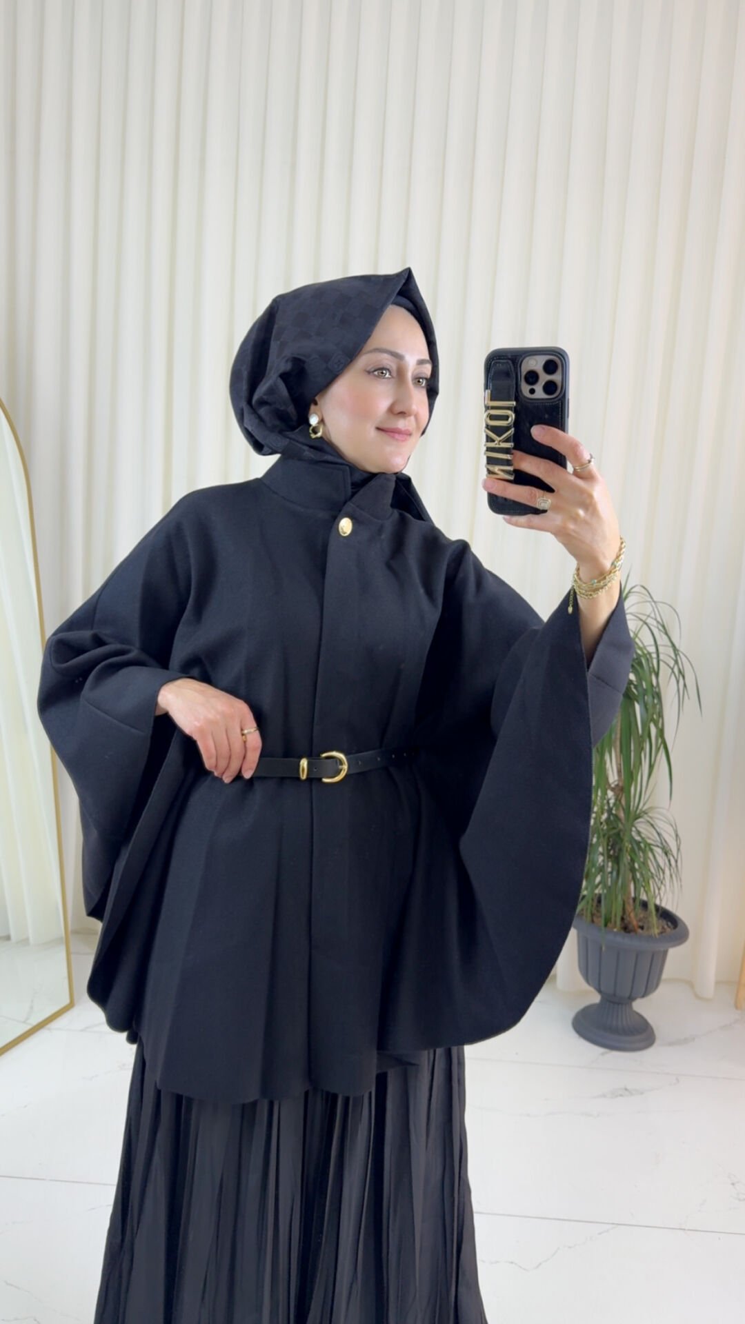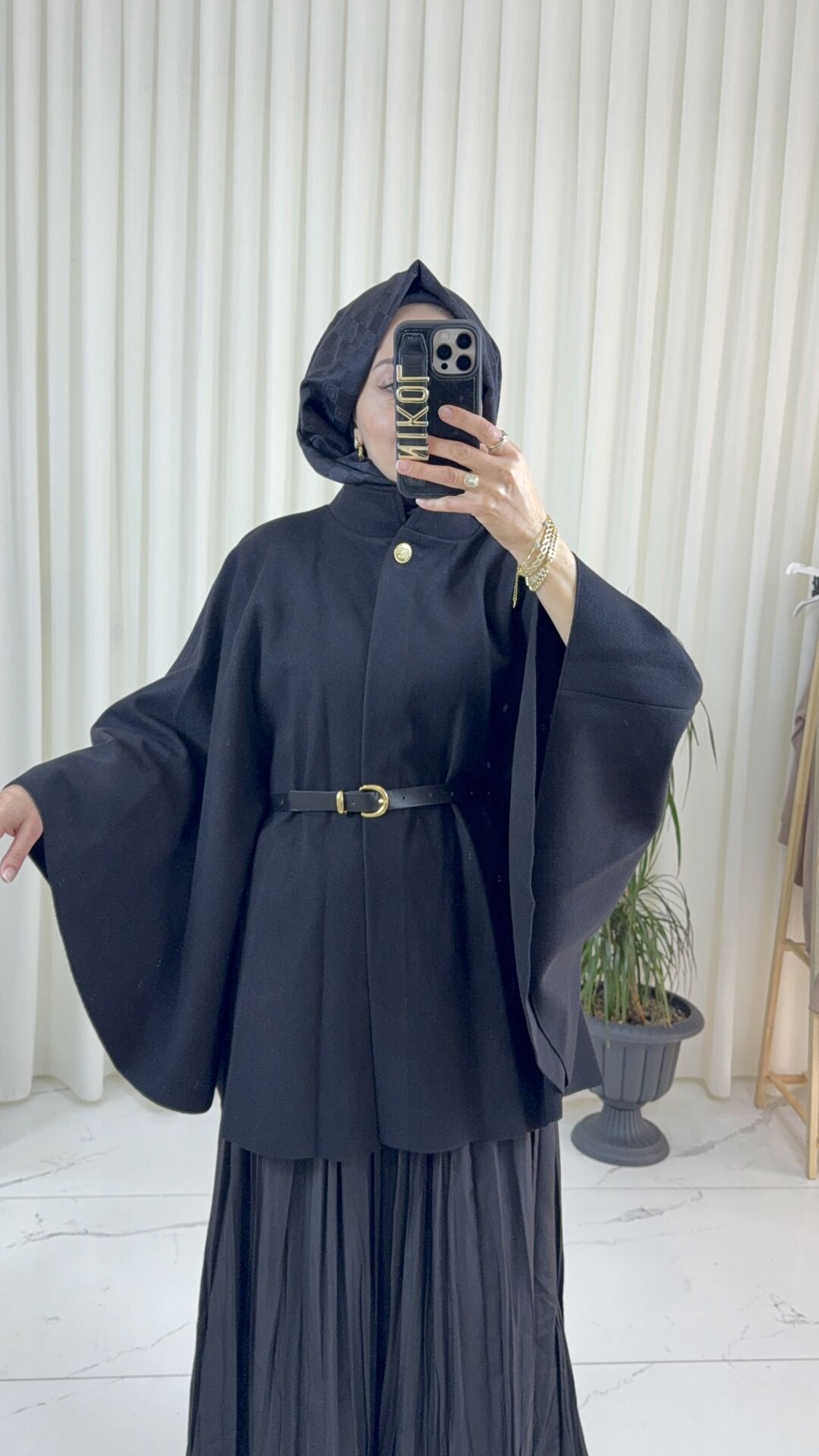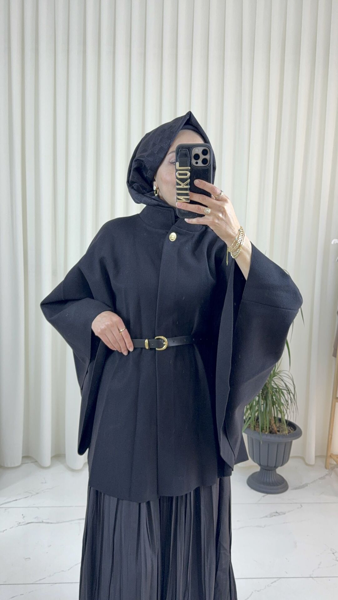 KEMERLİ SİYAH KAŞE PANÇO