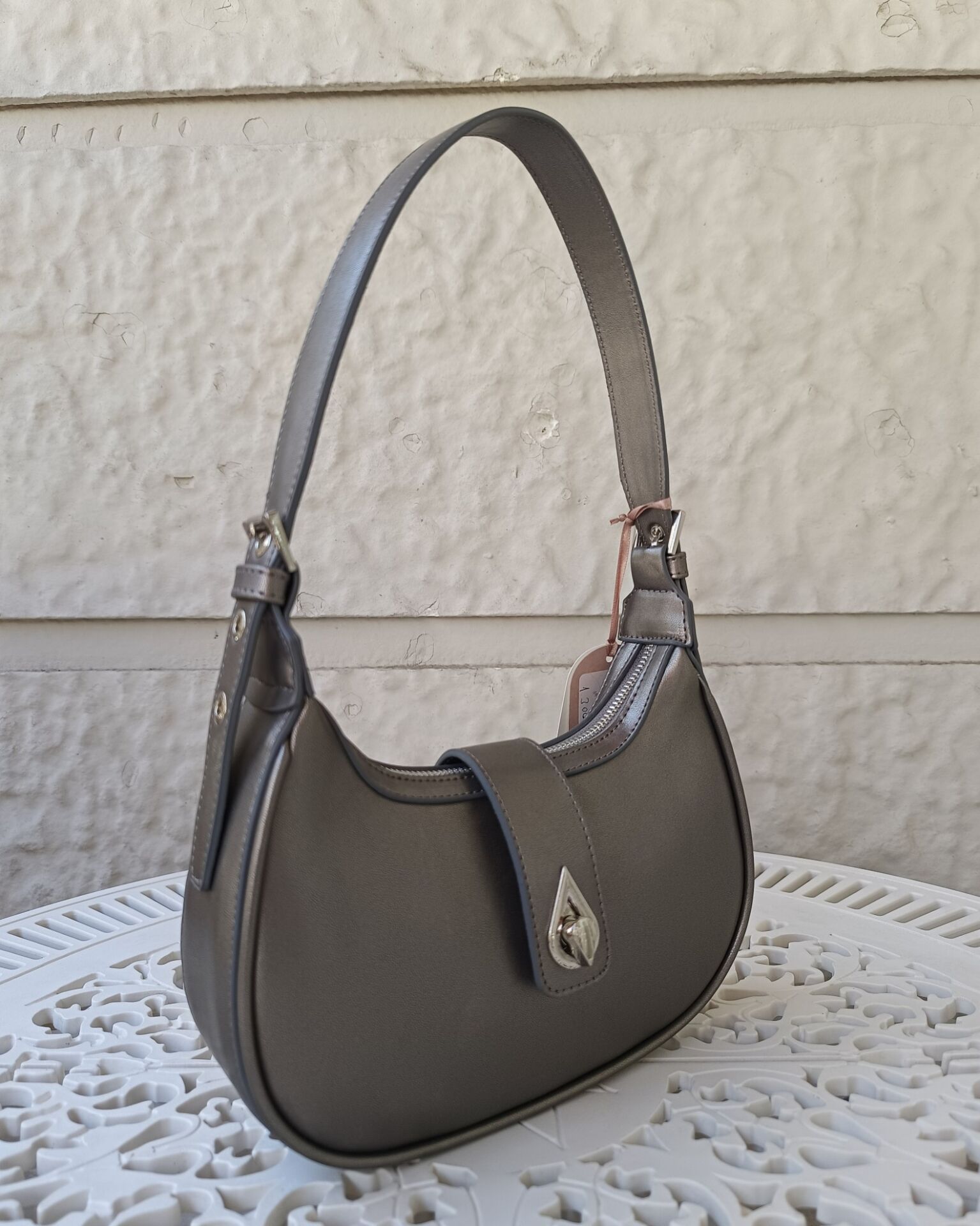 Zarafeti ve işlevselliği bir araya getiren bu çanta, modern kadınların stiline güçlü bir dokunuş katıyor. Şık formu, sade ama etkileyici detayları ve gümüş rengin zarafeti hem gündelik kullanımda hem özel davetlerde rahatlıkla tercih edilebilir. Parlak görünümlü kaliteli dış yüzeyi ve dikkat çekici metal tokası, bu çantayı klasik modellerden ayırıyor.