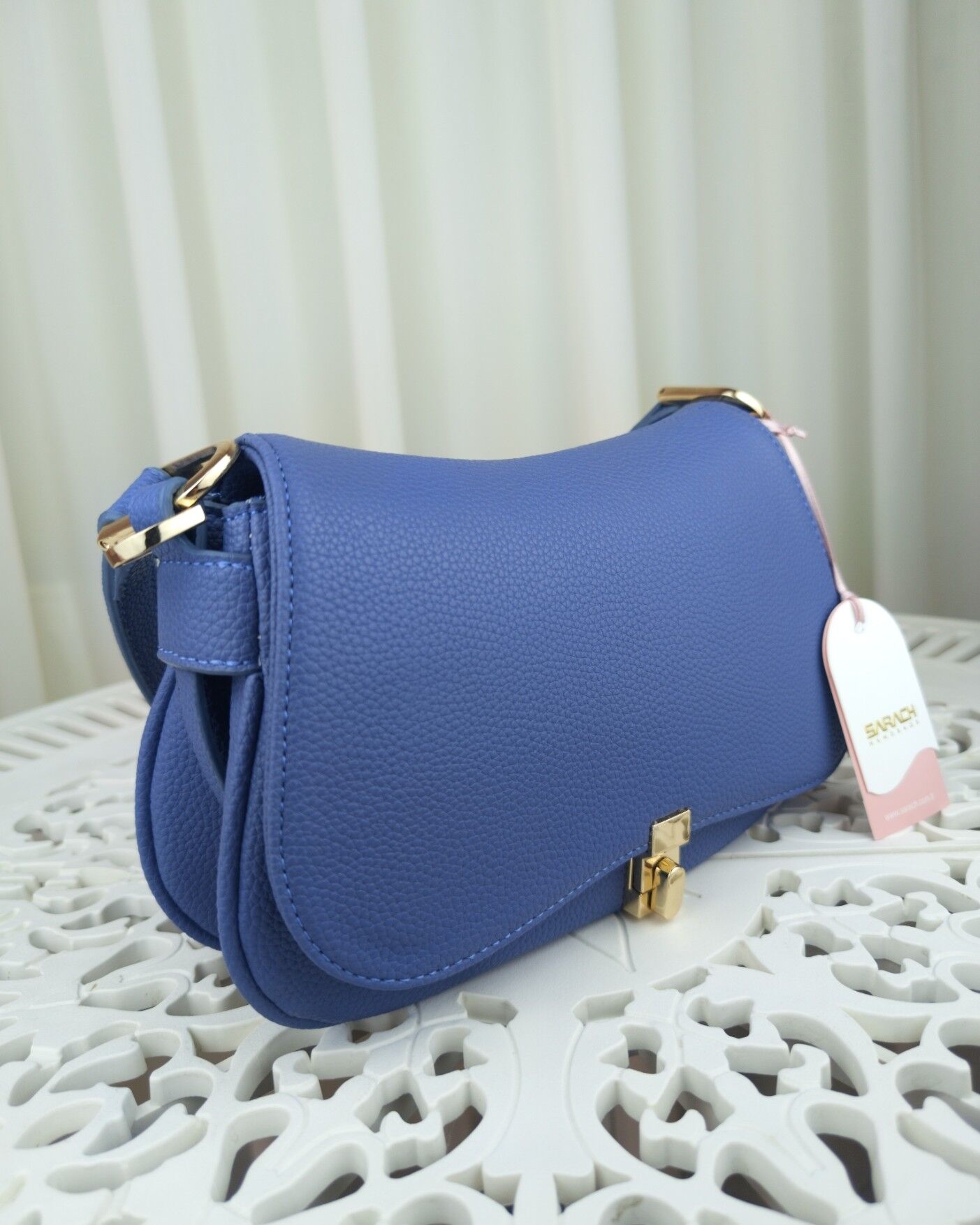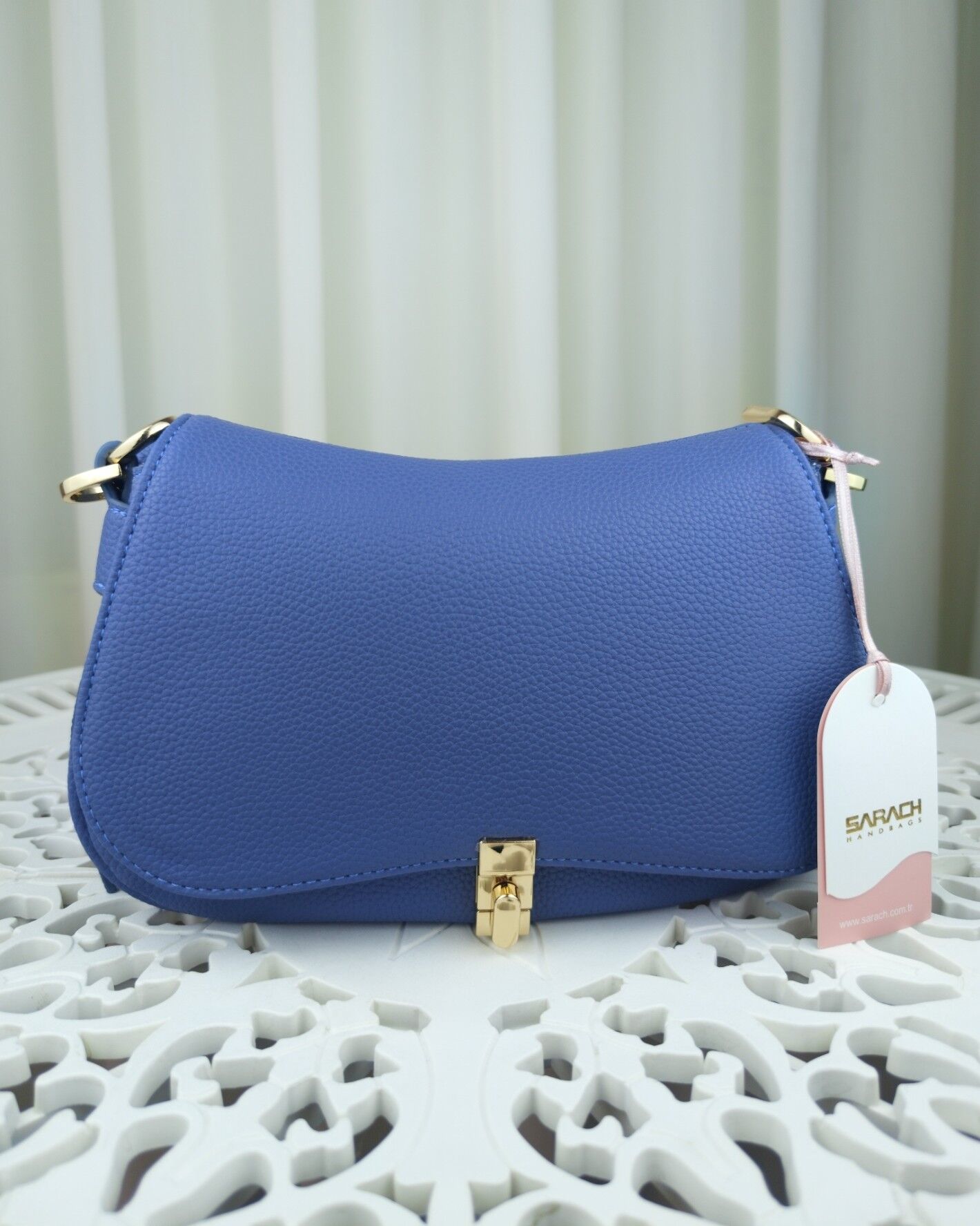 Zarafetin ve modern şıklığın buluştuğu bu omuz çantası, yumuşak dokulu mavi rengi yüzeyi ve altın rengi metal tokalarıyla stilinize şık bir dokunuş katıyor. Minimal ama etkileyici tasarımı, günlük kullanımda ya da özel davetlerde rahatlıkla tercih edilebilir. Ayarlanabilir omuz askısı sayesinde hem omuzda hem elde taşıma kolaylığı sunar.
