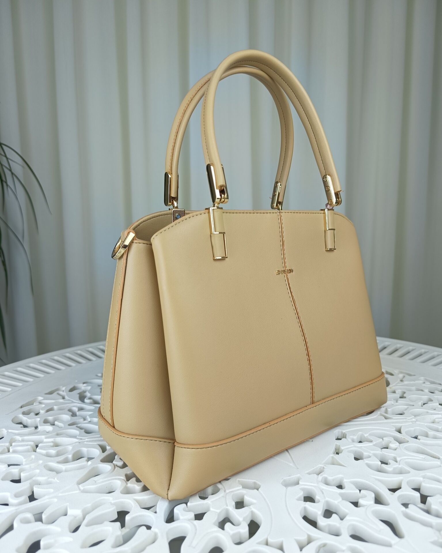 Zamansız şıklığın ve zarafetin simgesi olan bu nude el çantası, sade tasarımı ve kaliteli dokusuyla günlük kombinlerinize şık bir dokunuş katar. SARACH imzalı bu özel model, altın tonlu metal detayları ve yuvarlatılmış hatlarıyla minimalist bir görüntü sunuyor.