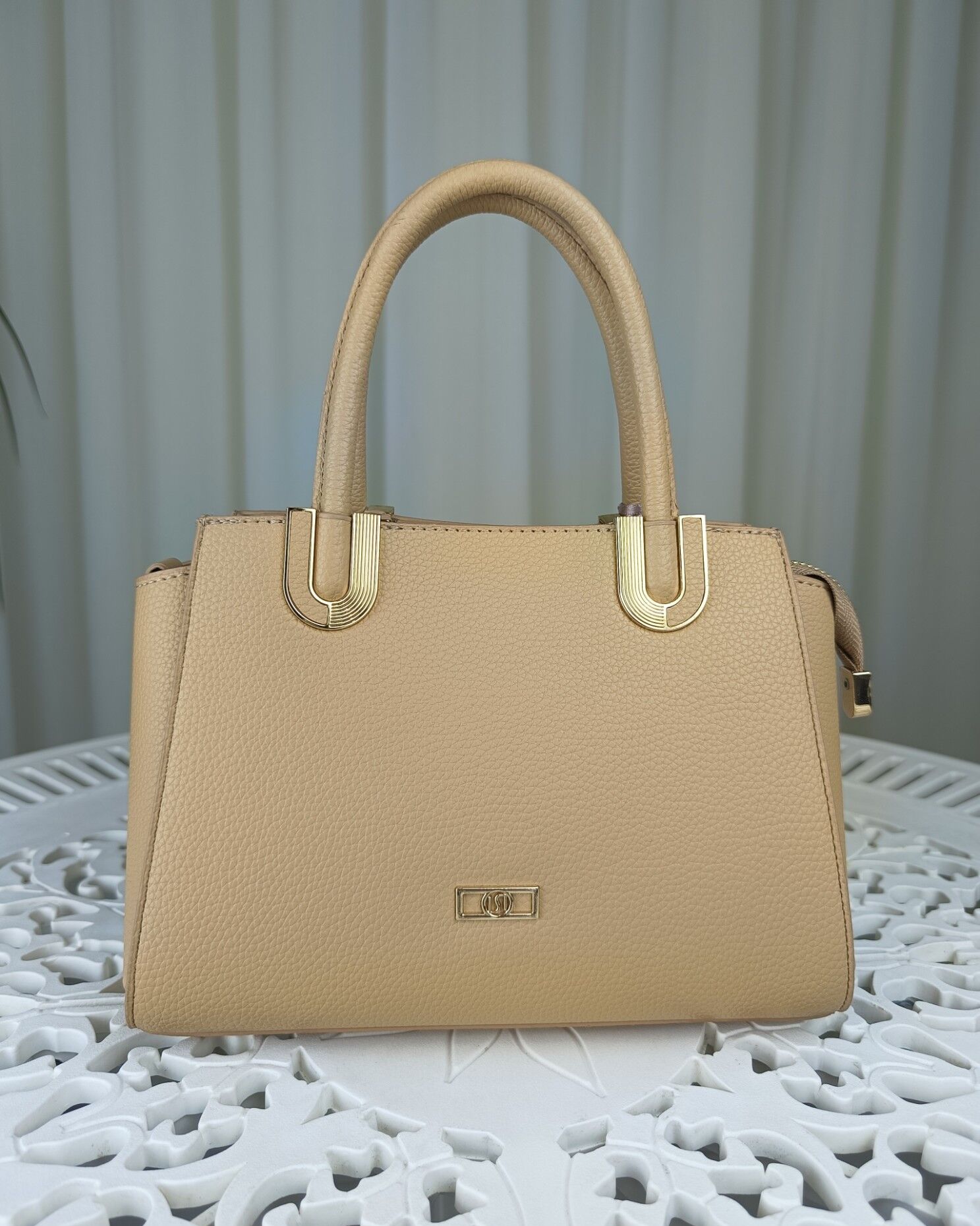 Zarif çizgiler, modern detaylar… Bu özel tasarım el çantası, sade şıklığın bir temsilcisi olarak öne çıkıyor. Dokulu suni deri yüzeyi, altın renkli metal aksesuarlarla buluşarak zarif bir görünüm sunuyor. Hem elde hem omuzda taşınabilir yapısıyla gün boyu stilinize eşlik eder.