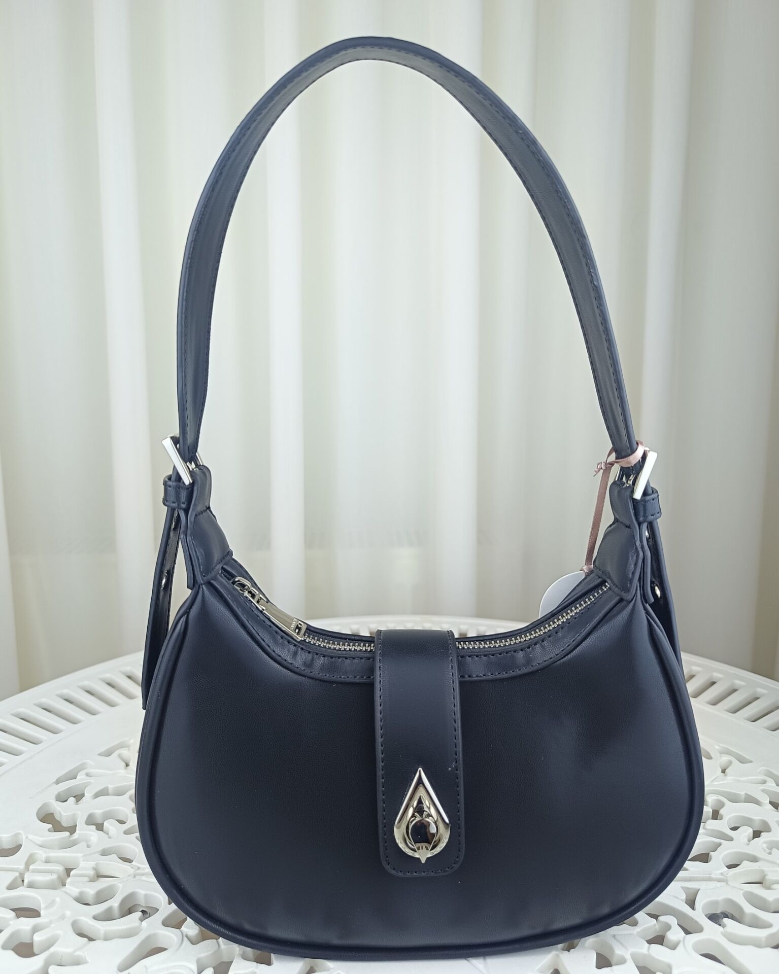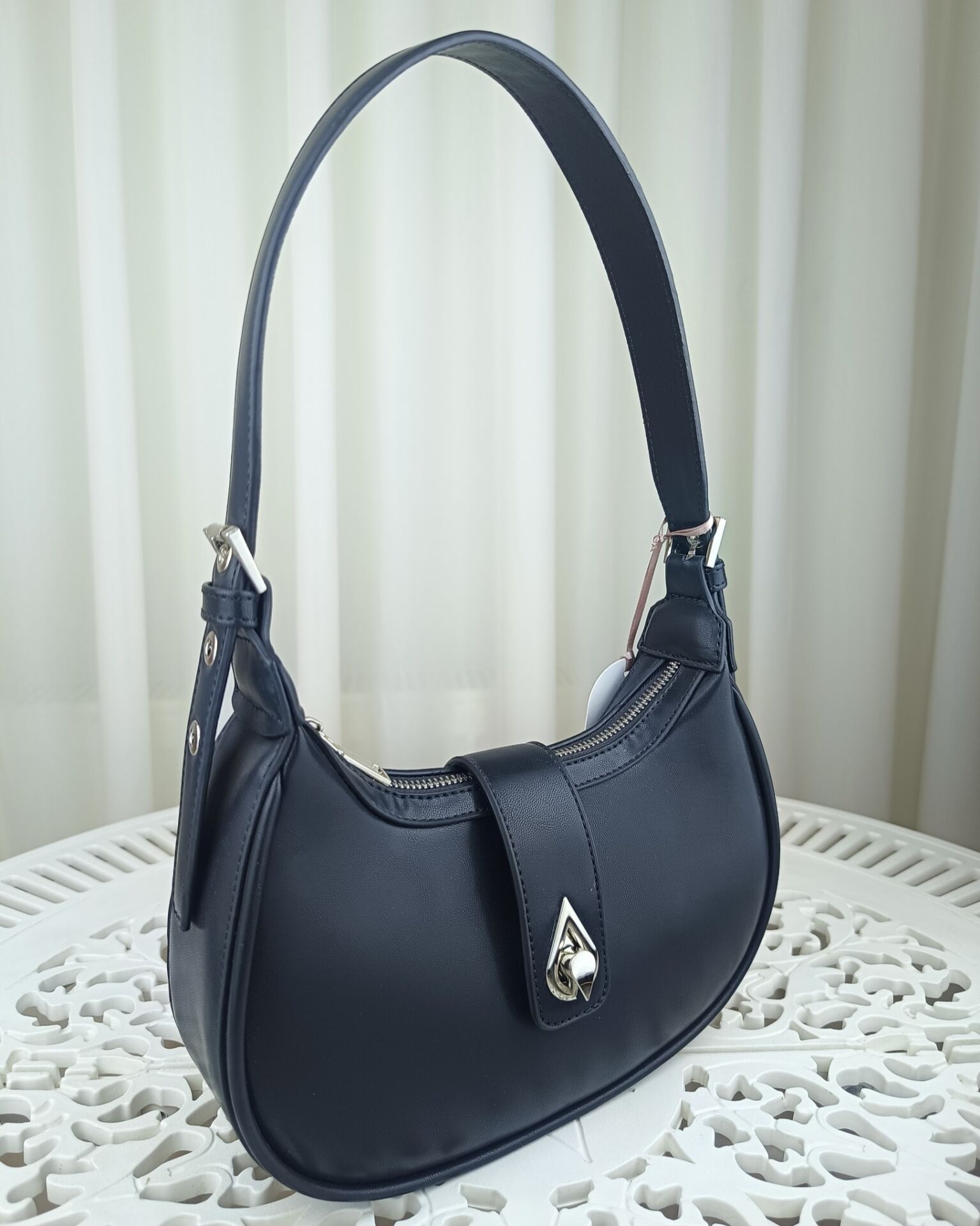 Zarafeti ve işlevselliği bir araya getiren bu çanta, modern kadınların stiline güçlü bir dokunuş katıyor. Şık formu, sade ama etkileyici detayları ve siyah rengin asaletiyle hem gündelik kullanımda hem özel davetlerde rahatlıkla tercih edilebilir. Parlak görünümlü kaliteli dış yüzeyi ve dikkat çekici metal tokası, bu çantayı klasik modellerden ayırıyor.