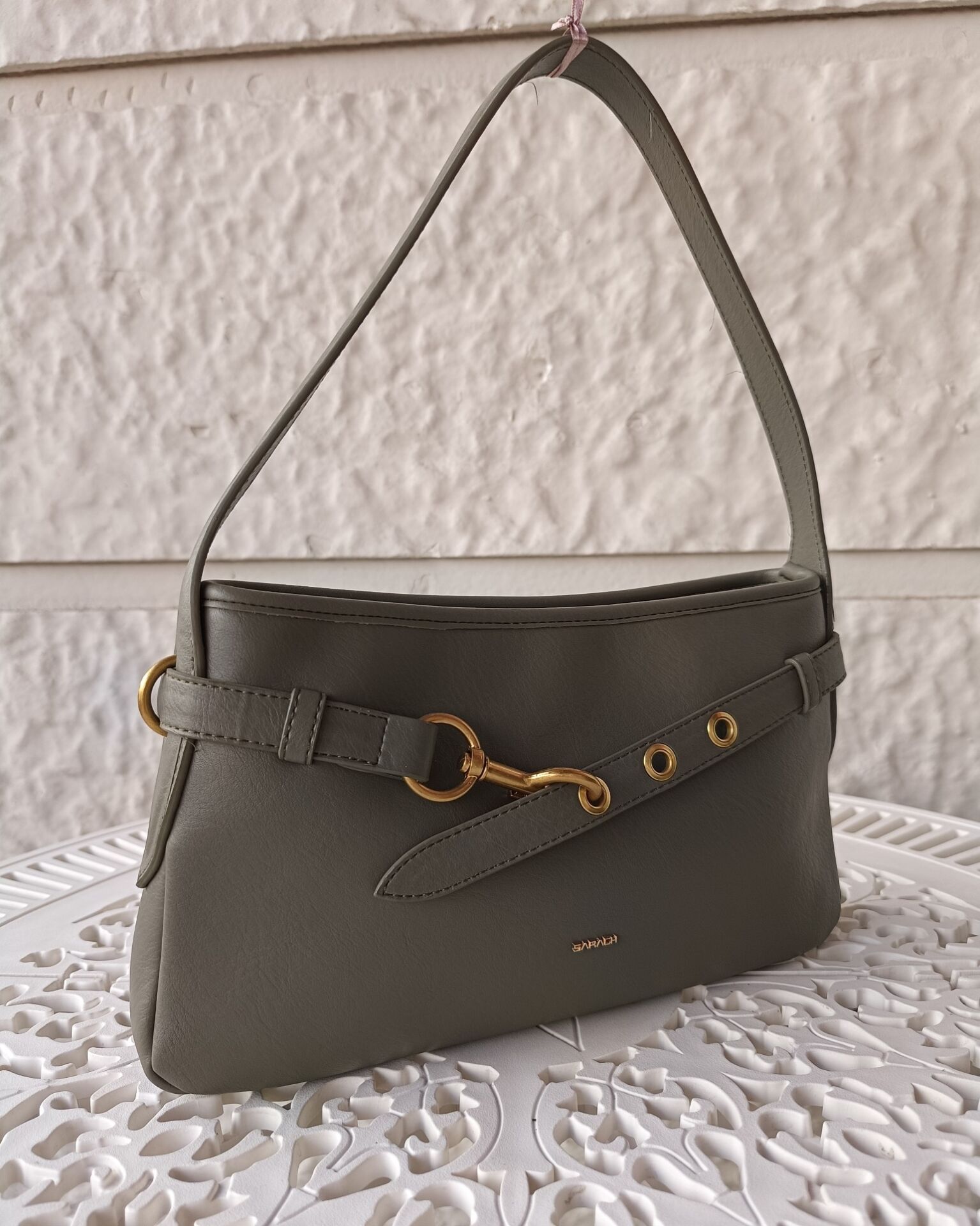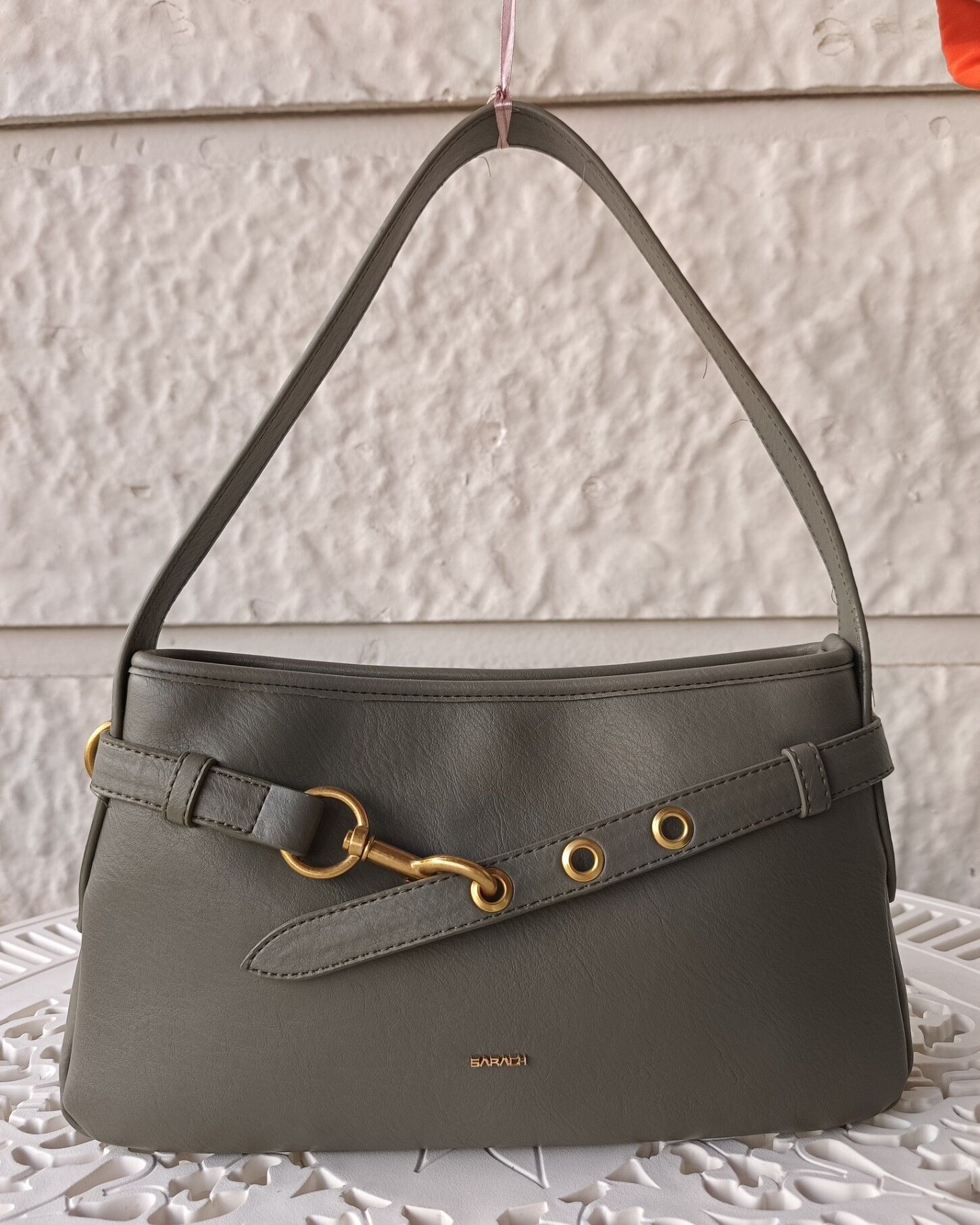 Göz alıcı metal tokası ve kemer detaylarıyla öne çıkan bu bej rengi omuz çantası, klasik çizgilere modern bir yorum katıyor. Mat suni deri yüzeyi, yarı yumuşak dokusu ve altın rengi aksesuarlarıyla şıklığı ve sadeliği mükemmel şekilde bir araya getiriyor.