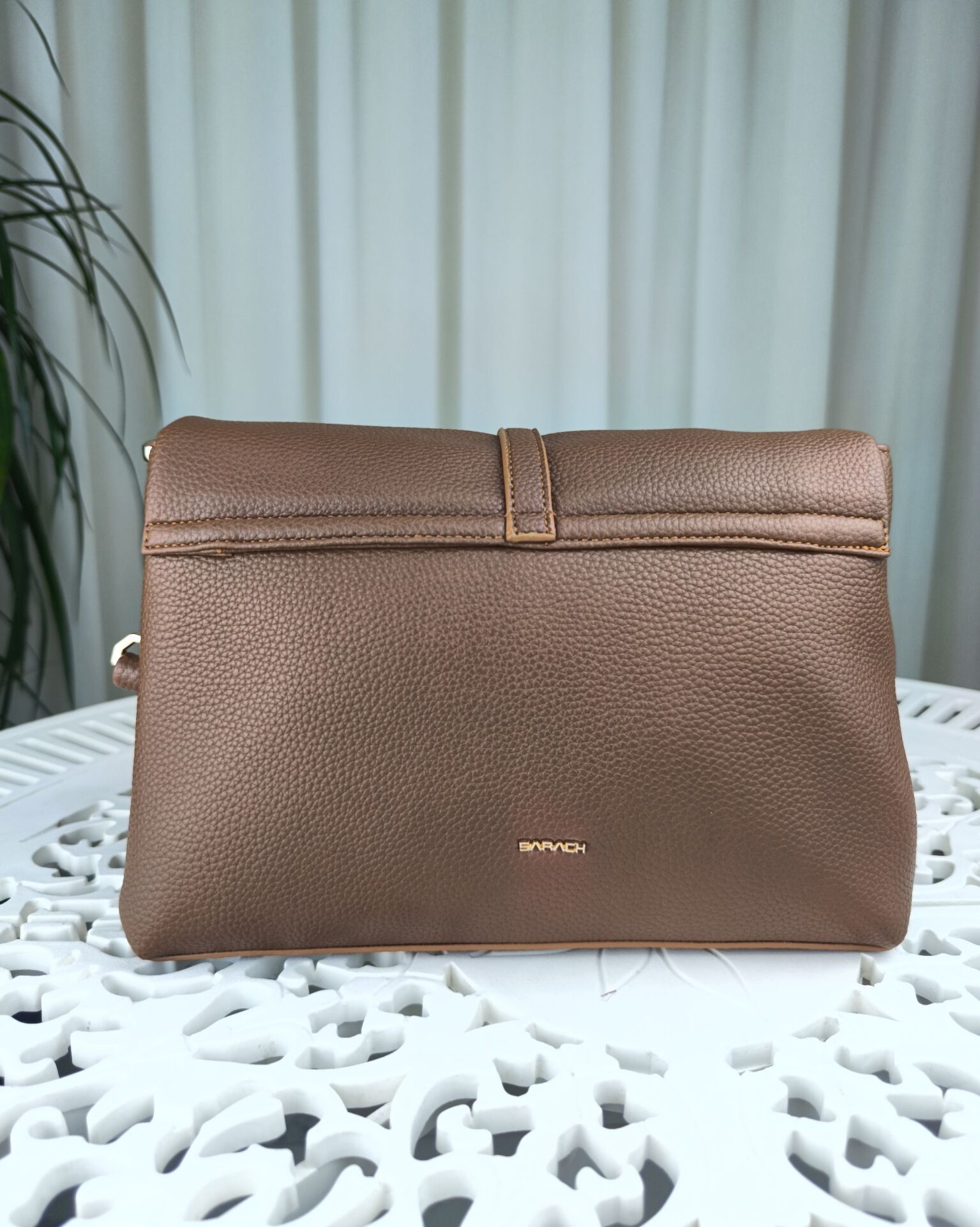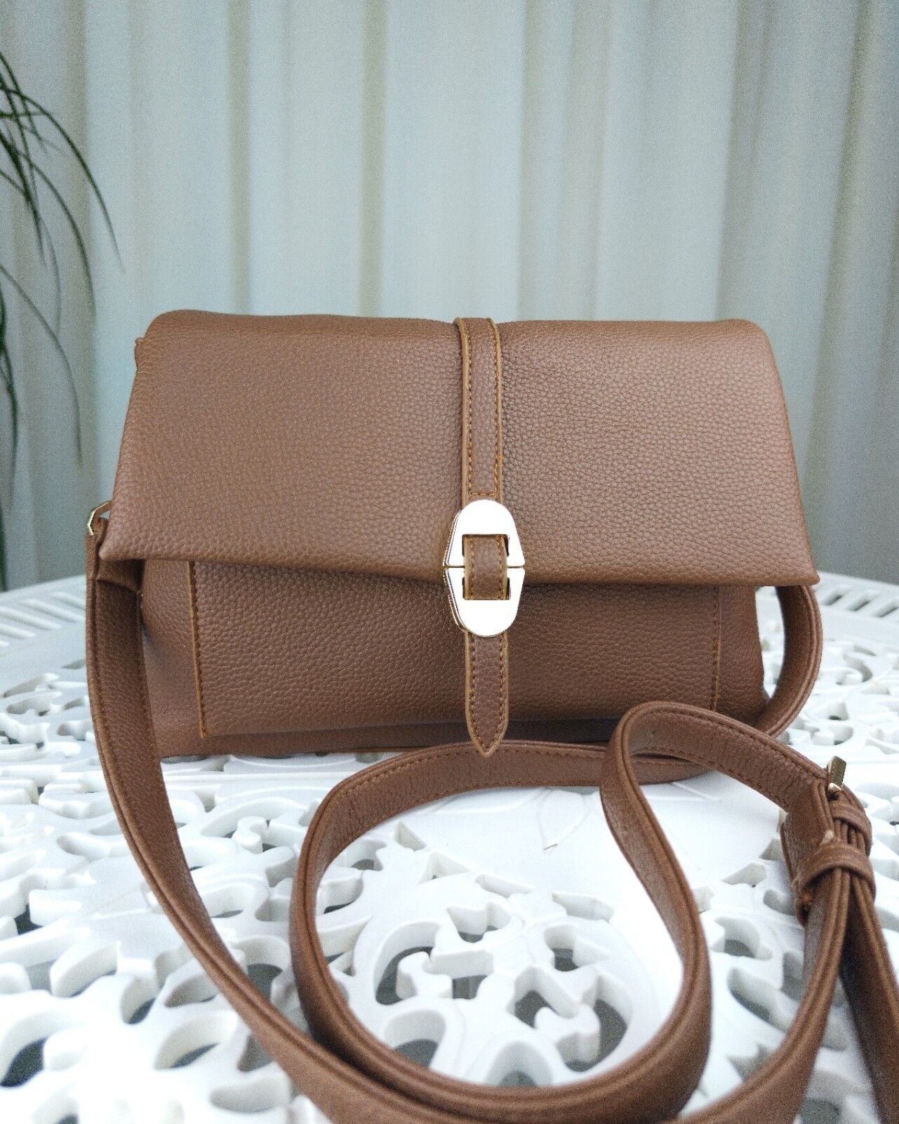 Doğal tonları ve sade çizgileriyle öne çıkan kahverengibu çanta, stilinize huzurlu ve zarif bir dokunuş katıyor. Yumuşak dokulu dış yüzeyi, altın detaylı logo ve ayarlanabilir askısıyla hem gündelik hem de özel kombinlerde rahatlıkla kullanılabilir.