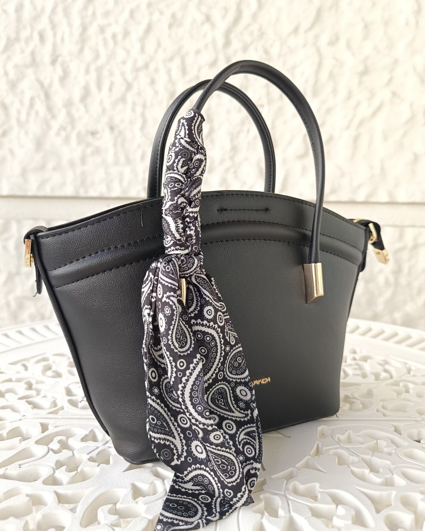 Zarafetin ve modern şıklığın simgesi olan bu siyah çanta, göz alıcı parlak yüzeyiyle stilinize şık bir dokunuş katar. Detaylara verilen özenle tasarlanmış bu model, paisley desenli fularıyla özgün ve dikkat çekici bir hava sunar.