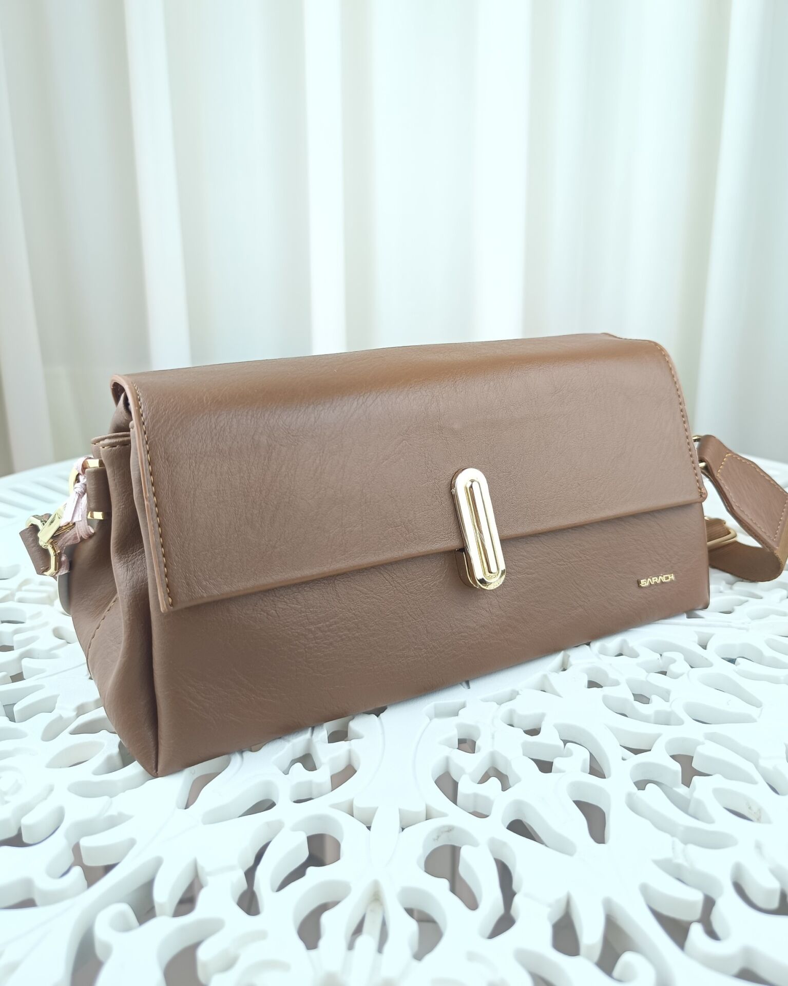 Zamansız şıklığın temsilcisi olan bu çanta, sade ve modern tasarımıyla her kombine zarafet katıyor. Mat dokulu kaliteli suni deri yüzeyi ve altın renkli metal kilit detayıyla göz alıcı bir duruş sunuyor. Günlük kullanımda pratiklik sağlayan geniş iç hacmi ve ayarlanabilir askısı sayesinde hem konforlu hem de stil sahibi bir deneyim yaşatır. Hem elde hem omuzda taşınabilen yapısıyla çok yönlü kullanım imkanı sunar.