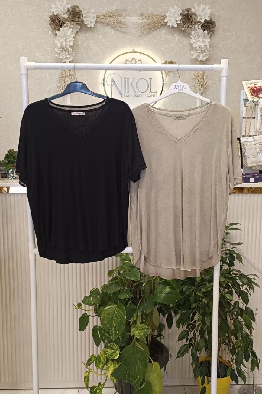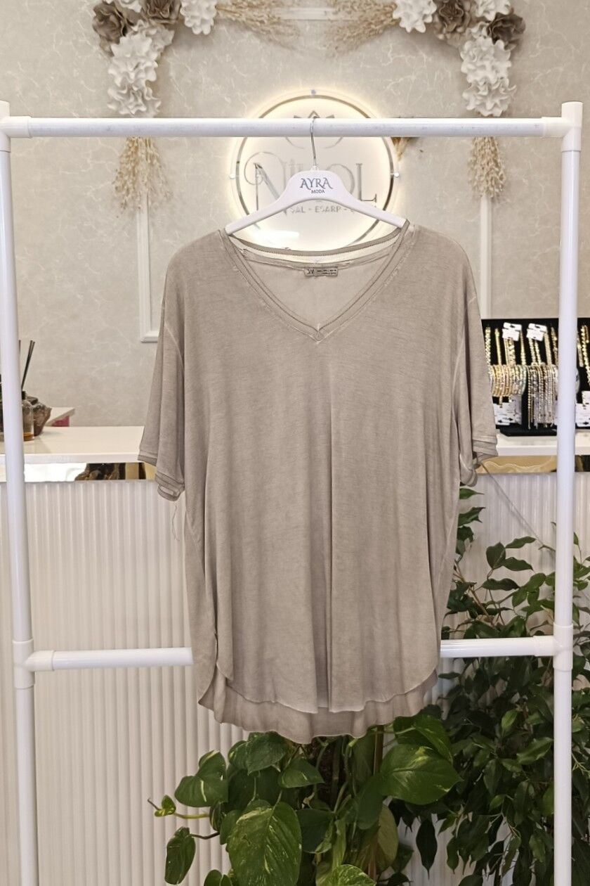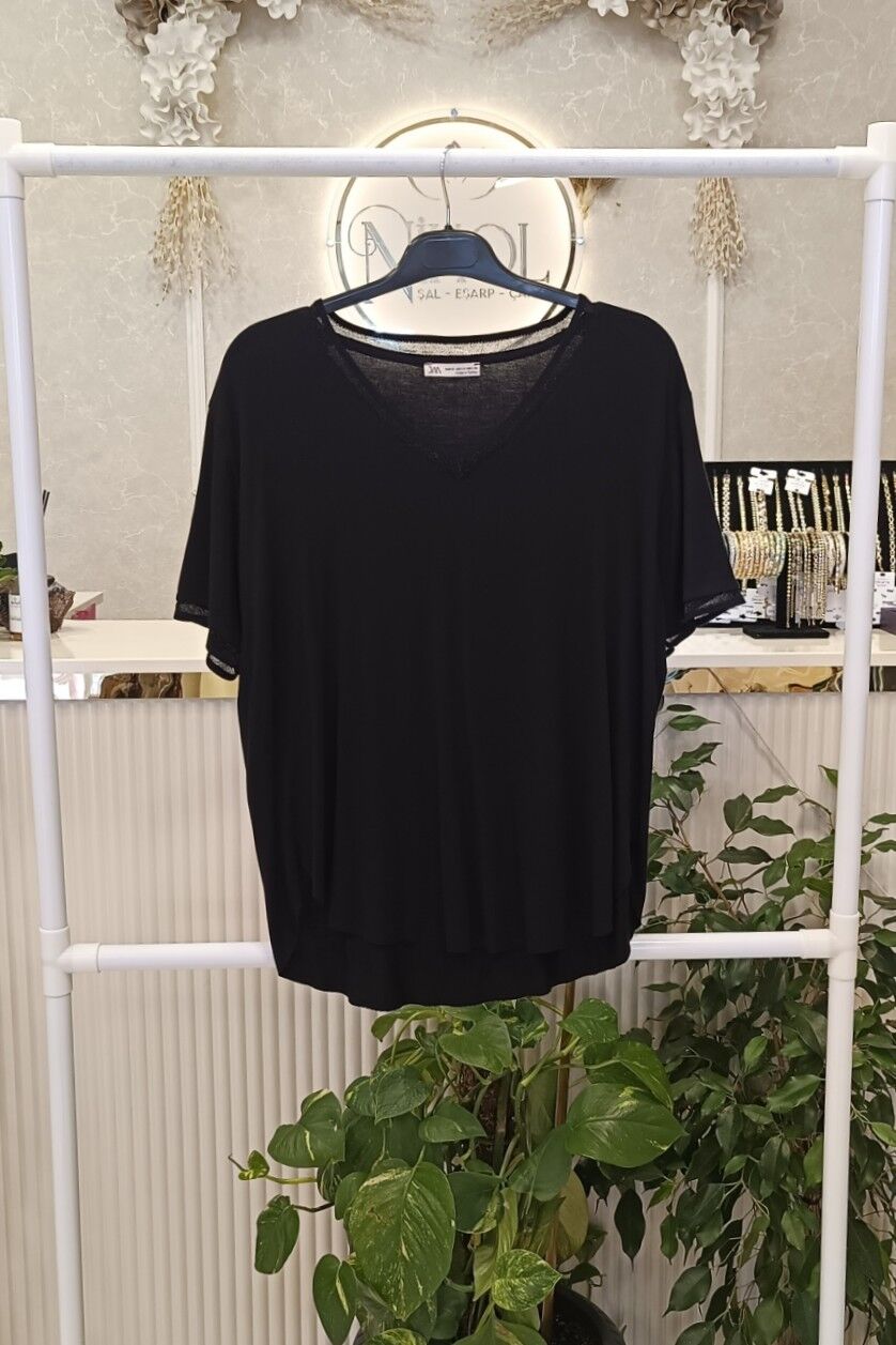 V Yaka Düşük Kol Salaş Bluz